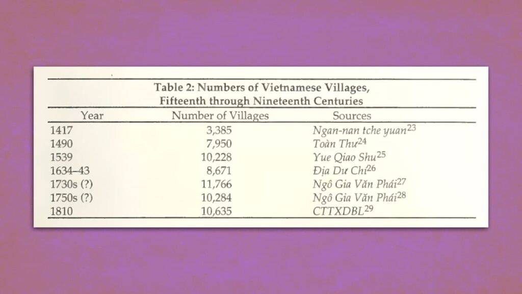 Clearly these administrative units could not possibly have all had a similar number of households. Therefore, Li Tana’s calculation of the population which takes as its starting point a proposed generic unit of the xã/village and which she argues had a common average number of households. . . that calculation is completely invalid, as this is not what the number “3,385” indicated.